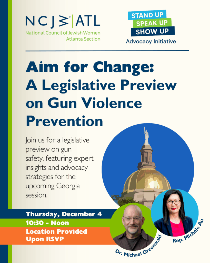 Please join other NCJW, Atlanta Section advocates at our first legislative preview supporting our advocacy initiative: Stand Up, Speak Up, Show Up.